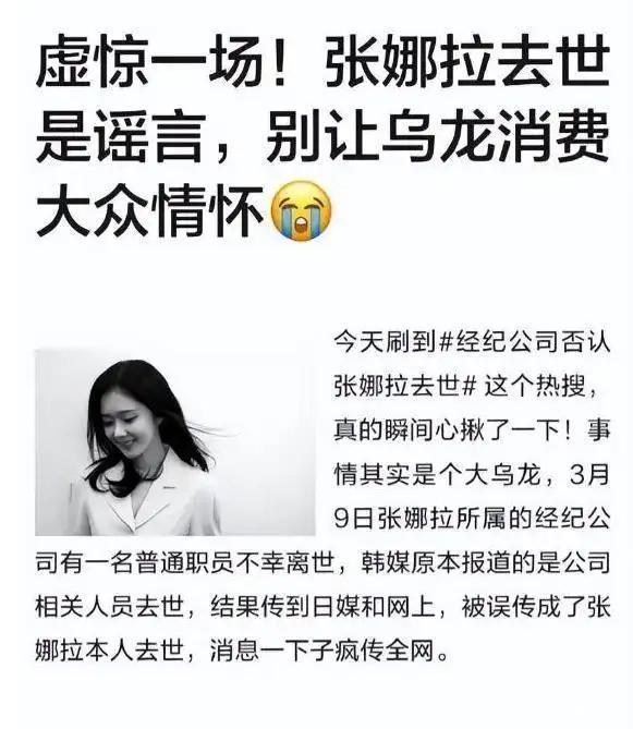 事实上,所谓自杀传闻,不过是经纪公司一名工作人员离世,被别有用心之人移花接木到张娜拉身上。而她本人在谣言发酵期间,还正常更新社交动态,状态轻松惬意。