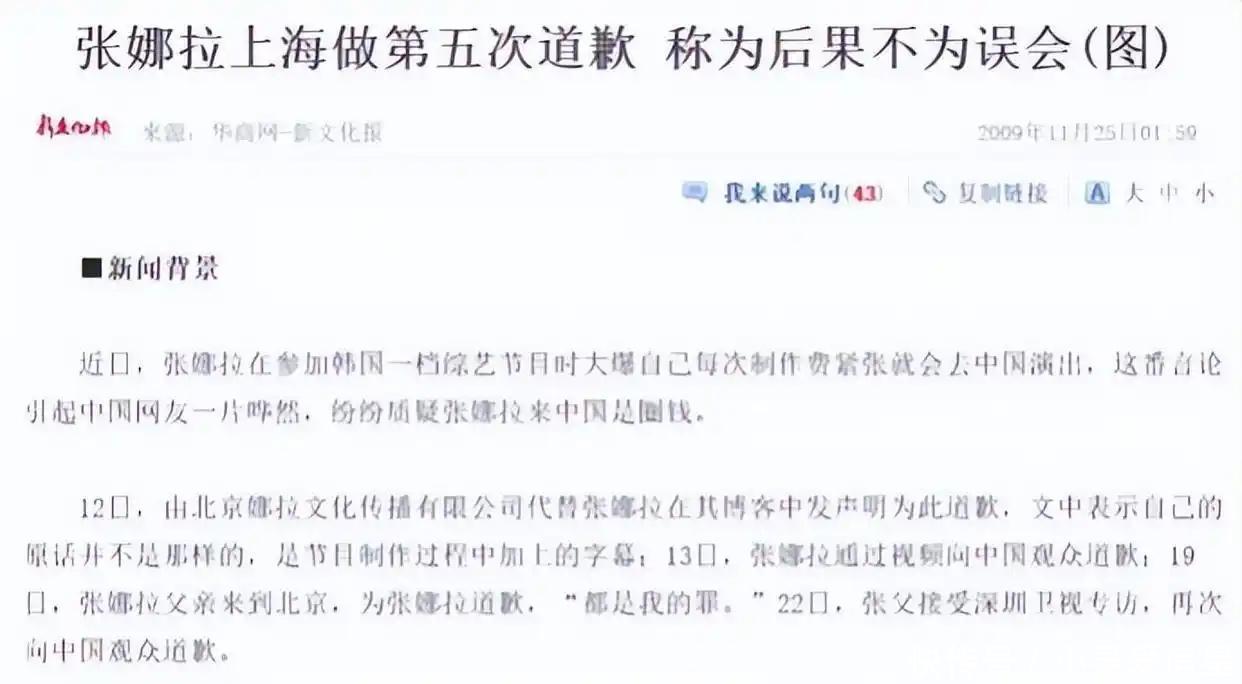 谁也没能预料,一场综艺里的口误,会让所有荣光化为泡影。2009年,张娜拉在韩国综艺中谈及家庭资金困境时,随口提及“缺钱就去中国演出”,这句话被断章取义后,迅速引爆国内舆论。